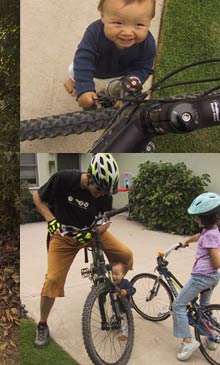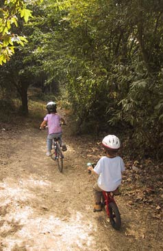 Saturday Oct 1st was a day of firsts for Jaelin and Katya, their first mountain biking experience! We rode to celebrate IMBA (International Mountain Biking Association) annual take your kid mountain biking day. Jaelen at 4 has got to be the youngest mountain biker I know, and Katya was hard to keep up with! We had to drive the biodiesel vehicle a few miles to the trails because unfortunately there's not much singletrack within riding distance of the house… Although we did ride along the wonderful boardwalk bike trail in the morning to a stint on the beach playground. When we arrived, we unloaded, found the first trail that led downhill and took it! We cruised along the creek a ways, under a tree branch to a little bridge where if we were quiet we could hear the water whispering to us. Refueled on lunch and an apple they were ready to head back uphill! Jaelin and Katya discovered speed bump airtime while hanging around the parking lot as I was loading up the bike, I think we are all looking forward to Take your kid mountain biking day next year.
